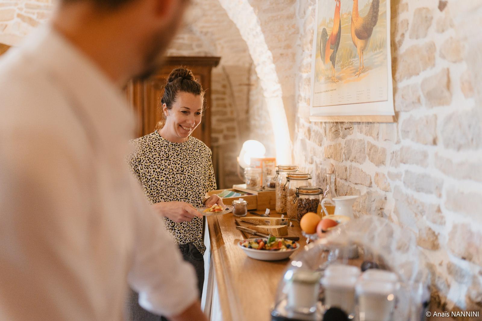 Breakfast is served in a magnificent vaulted room, with a focus on organic and local produce: hot drinks, fruit juices, pastries, cheese, cold meats, eggs.... Enjoy the peace and quiet on the shady terrace, stroll through the wooded park to meet the animals (donkeys, goats, ducks, chickens), play boules and cool off in the swimming pool.